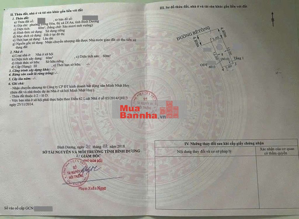 Thổ cư 60m2. Sổ hồng hoàn công