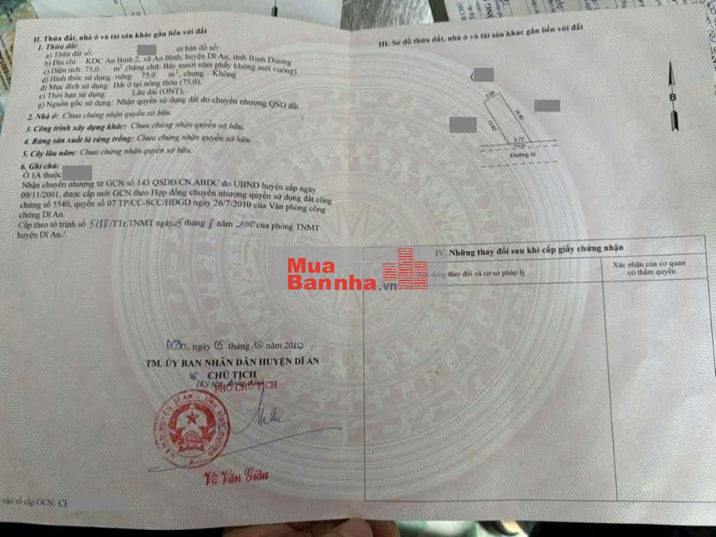 Vị trí: Mặt tiền đường nhựa rộng, kinh doanh thông thoáng có vỉa hè, đường Nguyễn Tri Phương vào 200m, gần trung tâm hành chính Dĩ An, giáp Thủ Đức. Khu dân cư đông đúc, tiện ích xung quanh đầy đủ, đi lại thuận tiện. Xây dựng tự do.