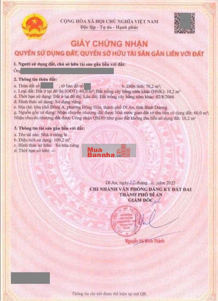 Thổ cư 60m2. Sổ hồng hoàn công.