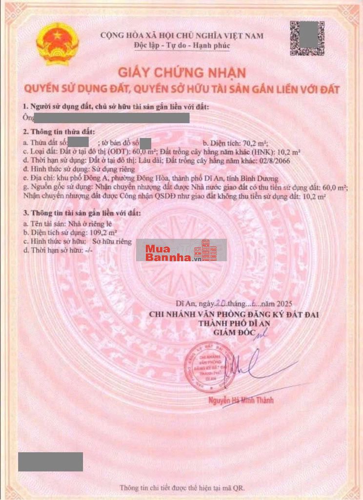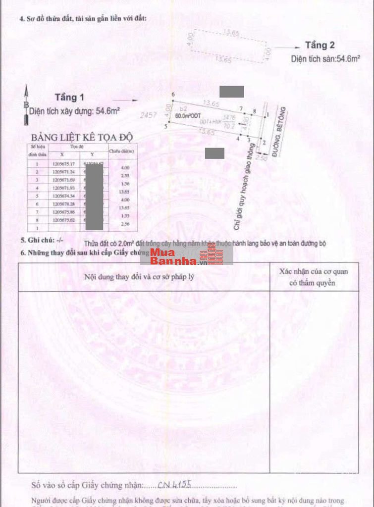 Thổ cư 60m2. Sổ hồng hoàn công.