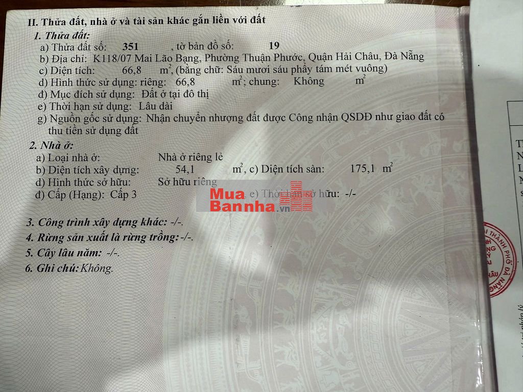 Quý vị đang xem nội dung tin rao "Nhà 4 tầng Hải Châu, ngay chợ Đống Đa". Mọi thông tin, nội dung liên quan tới tin rao này là do người đăng tin đăng tải và chịu trách nhiệm. Muabannha.vn luôn cố gắng để các thông tin được hữu ích nhất cho quý vị tuy nhiên Muabannha.vn không đảm bảo và không chịu trách nhiệm về bất kỳ thông tin, nội dung nào liên quan tới tin rao này.