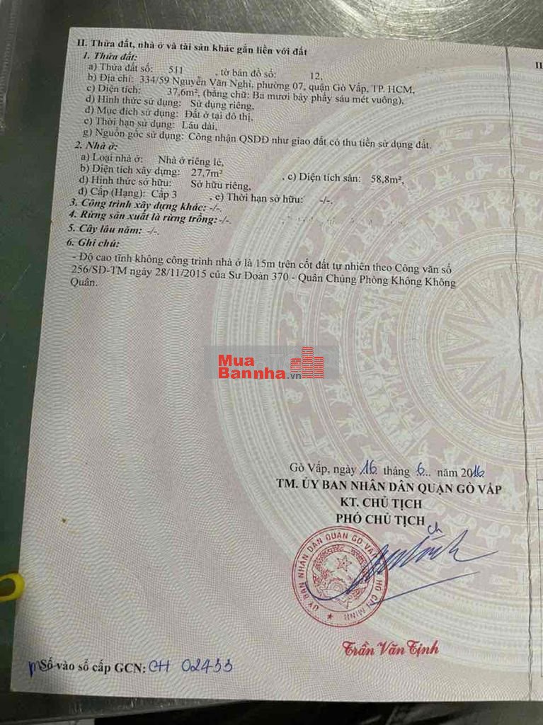 BÁN NHÀ CHÍNH CHỦ VỊ TRÍ 334/59 NGUYỄN VĂN NGHI, P7, QUẬN GÒ VẤP