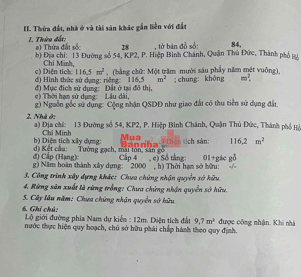 Nhà chính chủ không nợ ngân hàng