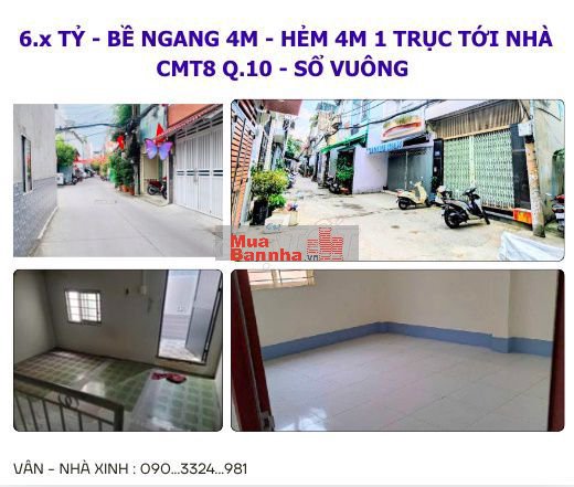 - Ngay CMT8 Q.10 - trước nhà không gian rộng 6 - 7m, xe hơi đỗ trước cổng, hẻm sạch sẽ, thông thoáng.
