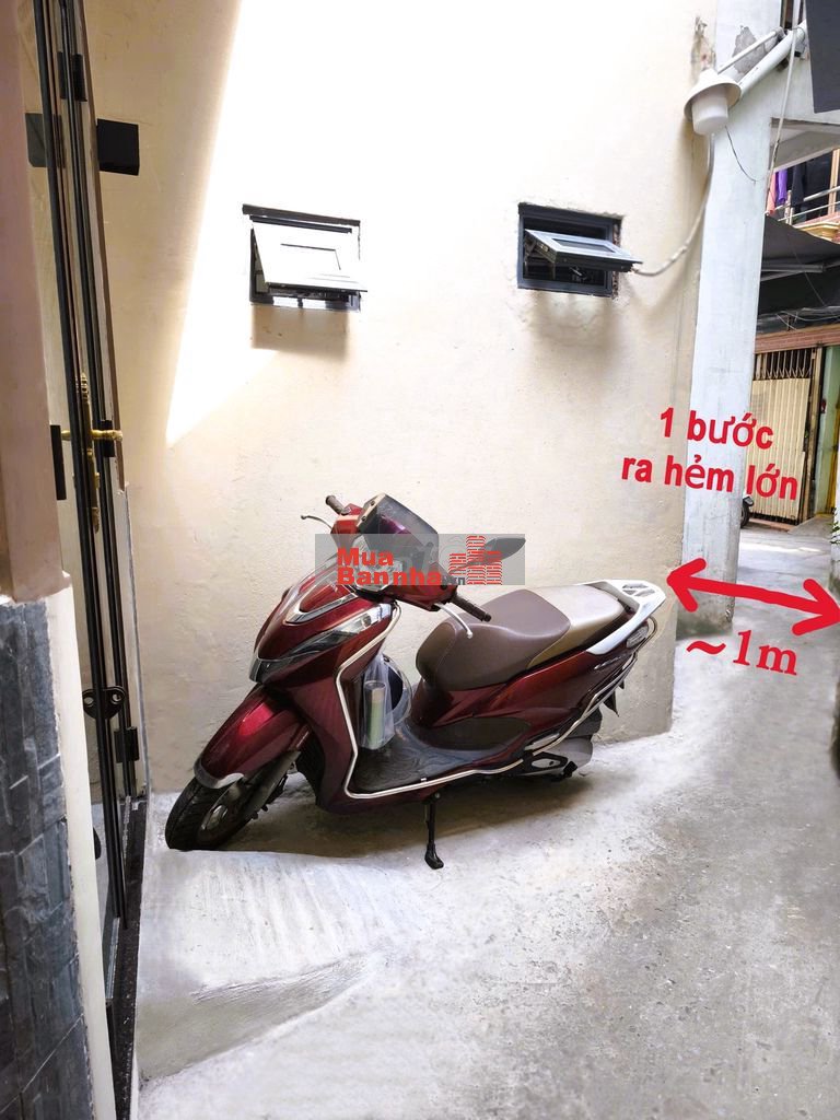 - E xin nói luôn điểm dở *** của nhà là cái eo hẻm tầm 1m, tuy nhiên ko phải hẻm nhỏ kéo dài mà chỉ 1 bước là ra hẻm lớn thông tứ phía, 50m ra CMT8. Đậu xe trước nhà cả ngày ko dướng bận xe ra vào, xem hình ạ.