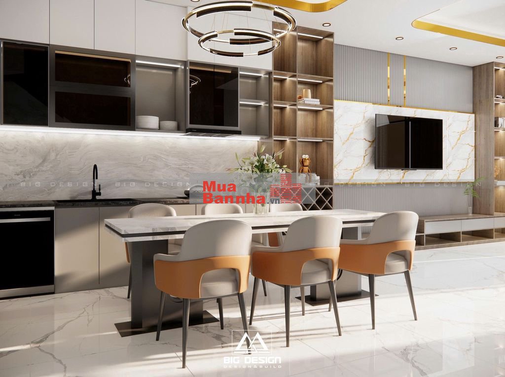 + Phòng bếp với hệ thống bếp hiện đại, gồm máy rửa chén, chậu rửa xịn xò, hệ thống giá để chén đẳng cấp, kết hợp với hệ thống bếp điện âm và hệ thống hút mùi tiêu chuẩn châu âu.