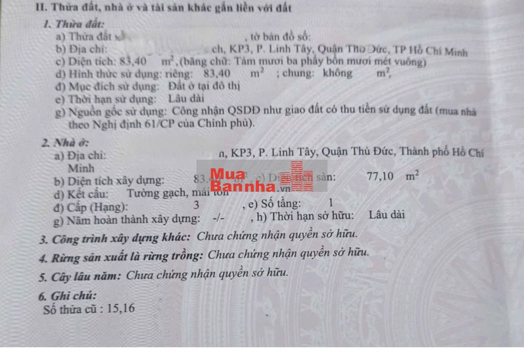 👉 Vị trí: Nguyễn Văn Lịch, Phường Linh Tây, nay thuộc phường Thủ Đức, Cách chợ Thủ Đức 500m, cách Đại Lộ Phạm Văn Đồng 500m