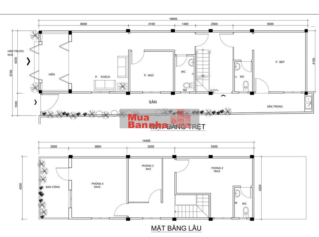 Diện tích đất : 5.5 x 18.4 = 100 m2