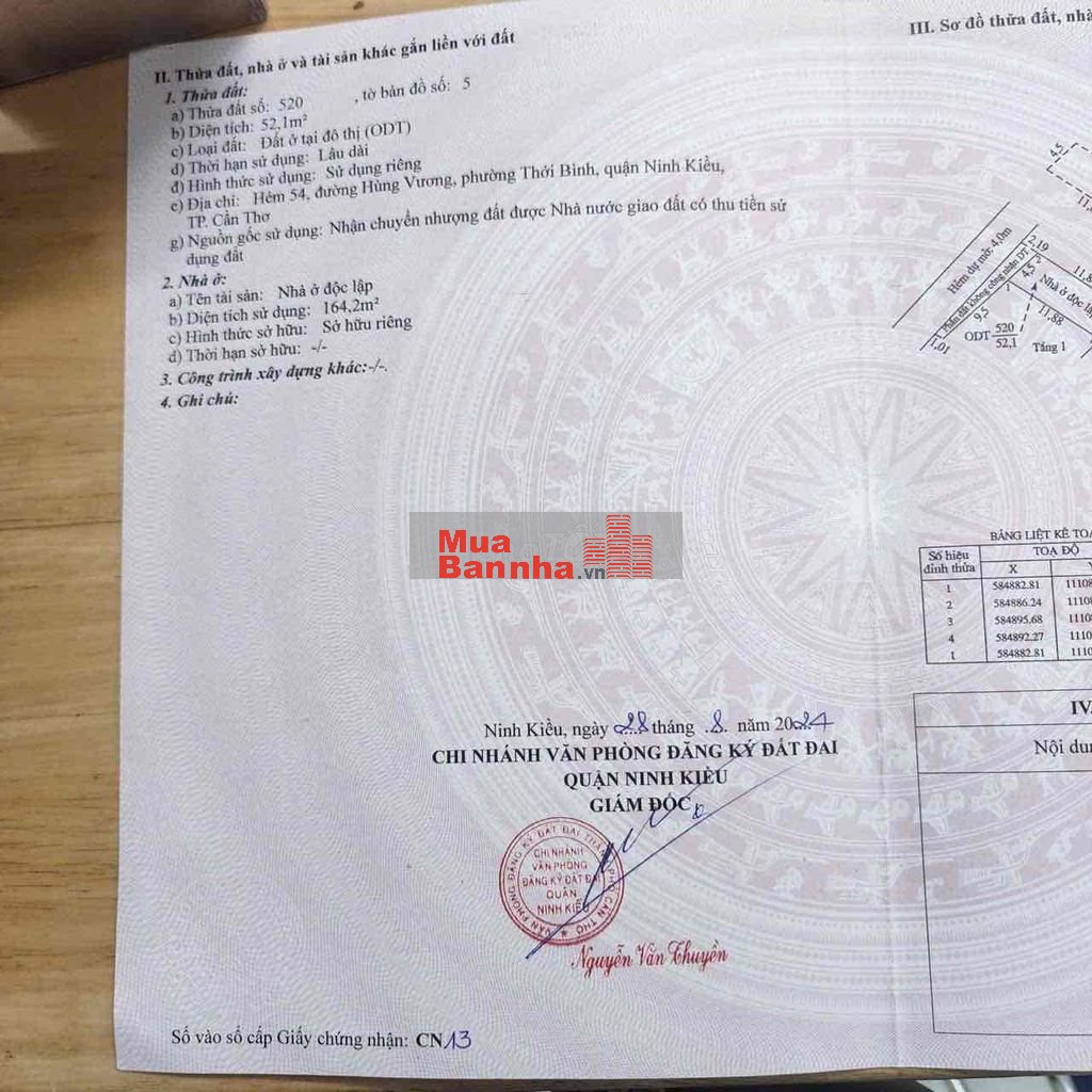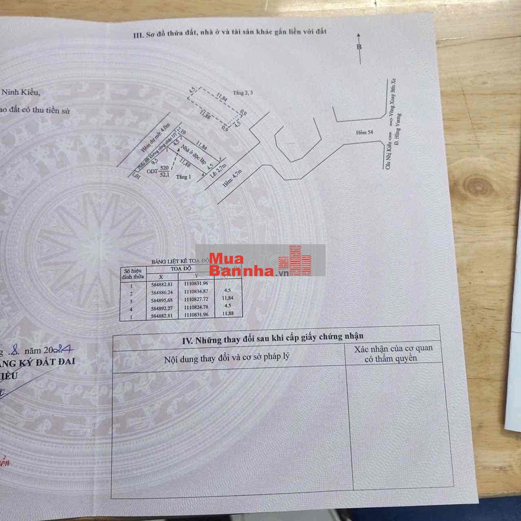 Dt 4,5 x 11,88 tdt 52,1m2 ODT hoan công 164m2