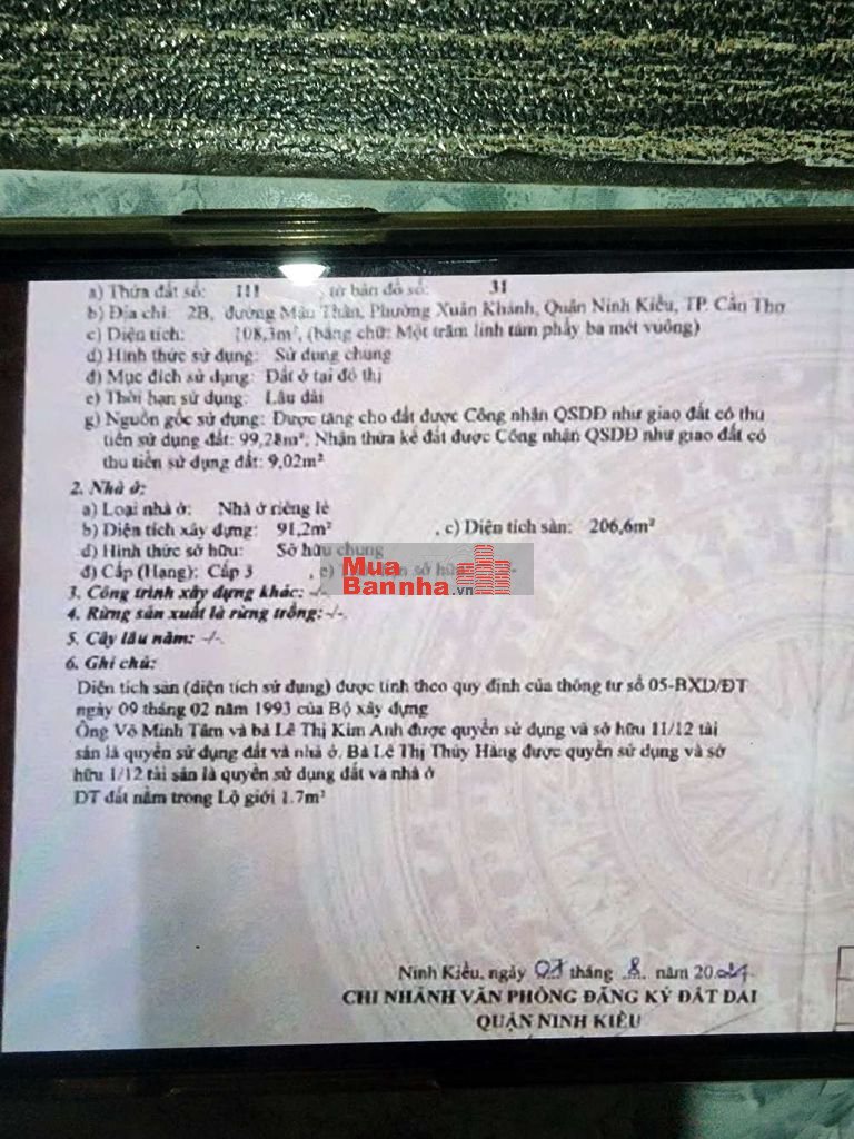 Đường mậu thân gần giao với đường 30/4 . Khu vực trung tâm . Trước đây có quy hoạch nhưng đã bỏ. Có giấy kiêm tra quy hoạch . Giá bán 24ty có thương lương . Chi tiết liên hê ***