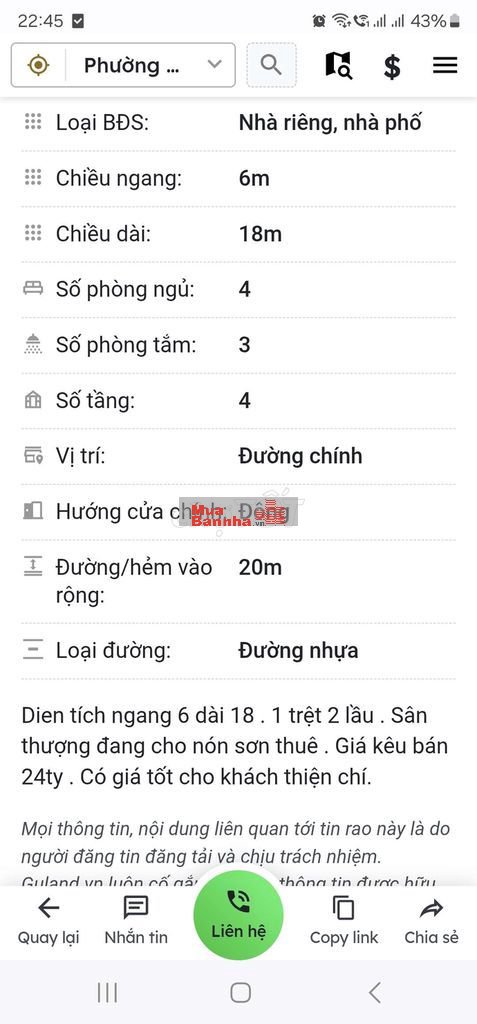 Quý vị đang xem nội dung tin rao "Ông anh bán nhà để lây tiền làm ăn". Mọi thông tin, nội dung liên quan tới tin rao này là do người đăng tin đăng tải và chịu trách nhiệm. Phongtro.vn luôn cố gắng để các thông tin được hữu ích nhất cho quý vị tuy nhiên Phongtro.vn không đảm bảo và không chịu trách nhiệm về bất kỳ thông tin, nội dung nào liên quan tới tin rao này.