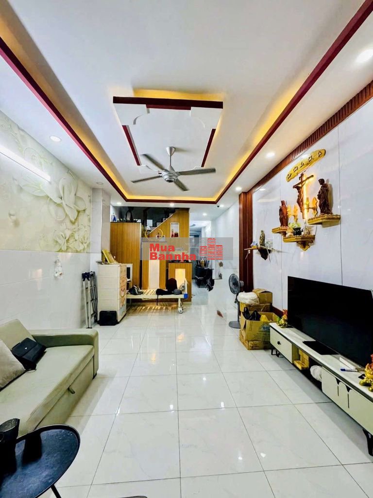 Diện tích sử dụng 100 m2 ngang 3,4 x 19m nở hậu gần 6m nhà 1 trêt 1 lầu, có 4PN, 2WC 1 phòng khách, 1 bếp và phòng giặc cách cv 100m gần chợ, gần trường học cấp 1,2,3 đường thông thoáng giá