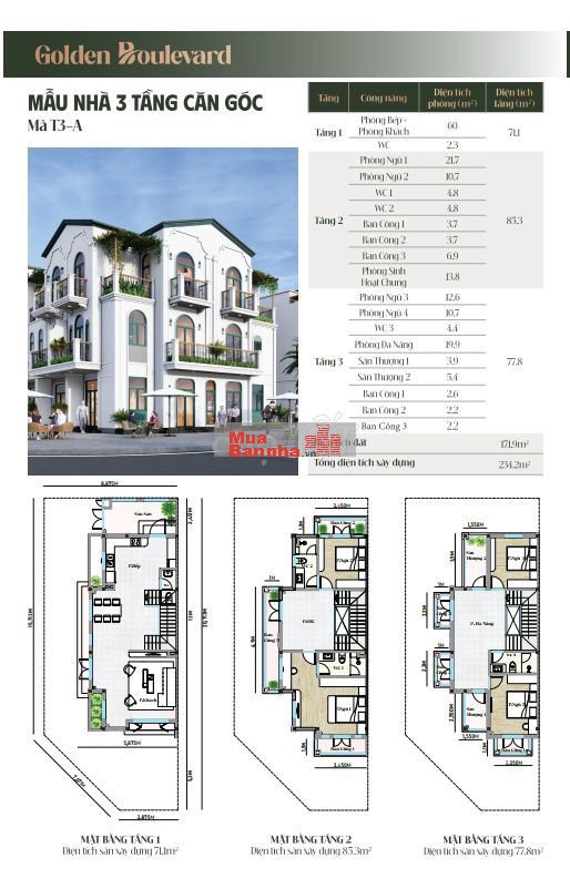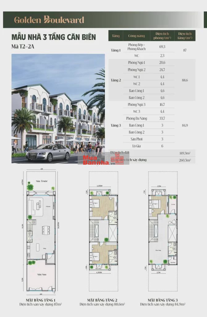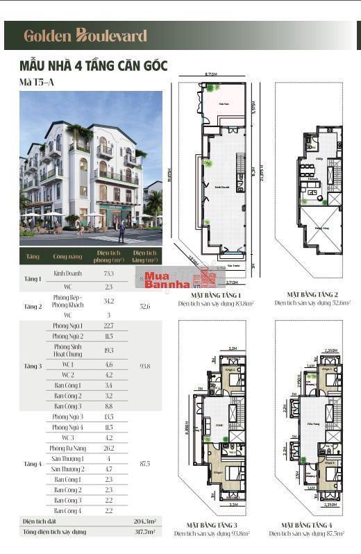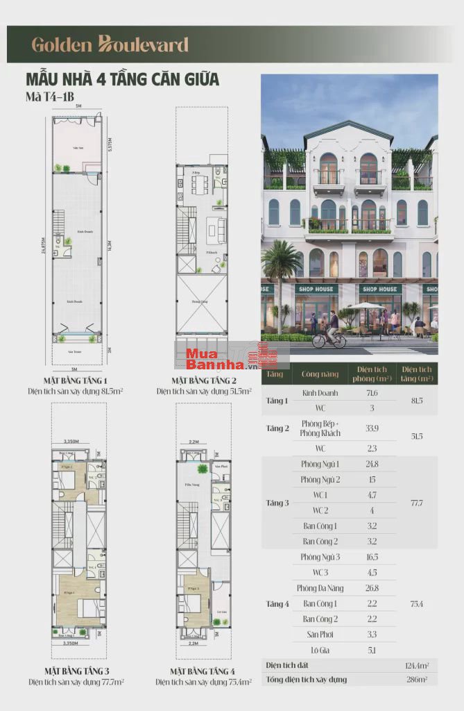 Tổng cộng 168 căn nhà phố liền kề: 84 căn 3 tầng + 84 căn 4 tầng