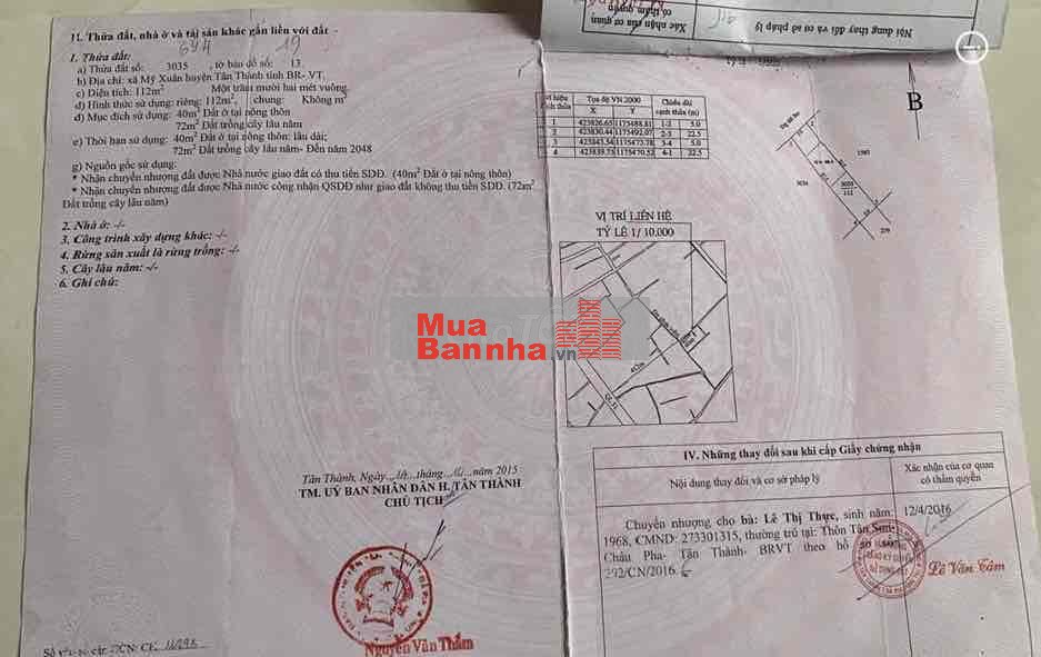 - 5x22 - Tổng diện tích 112m2 - 40m2 đất ở. Thuộc phường Mỹ Xuân, Phú Mỹ ( nay là phường Phú Mỹ, TPHCM ).