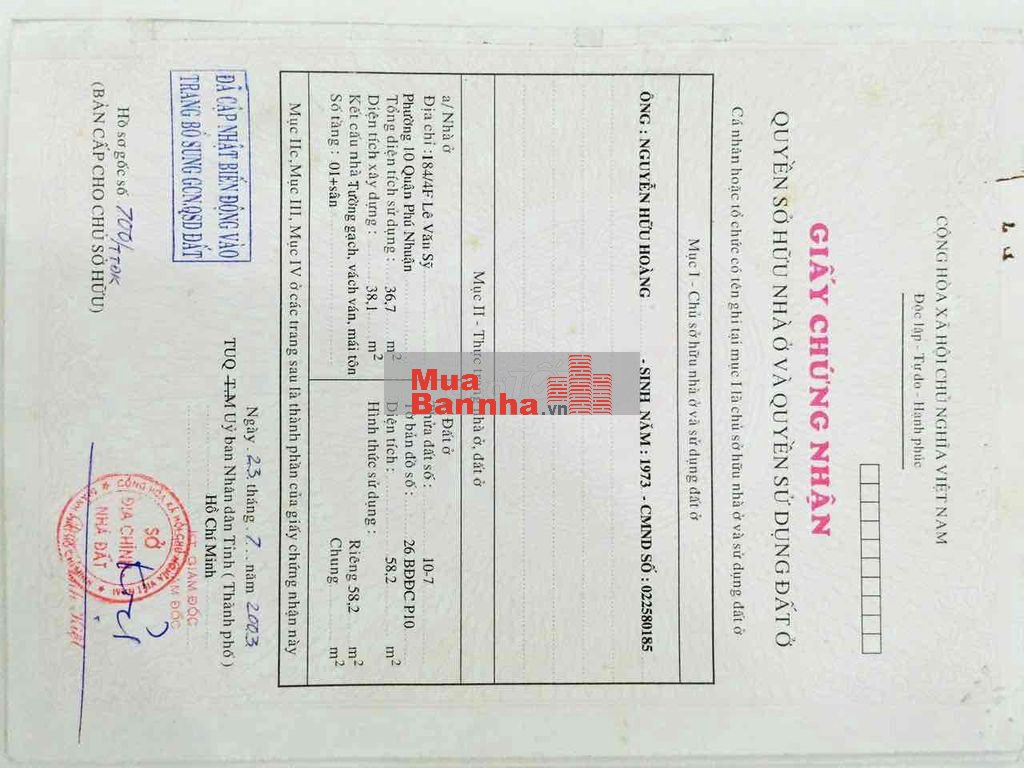 Nhà bán số 184/4F Lê Văn Sỹ, phường 10 quận Phú Nhuận