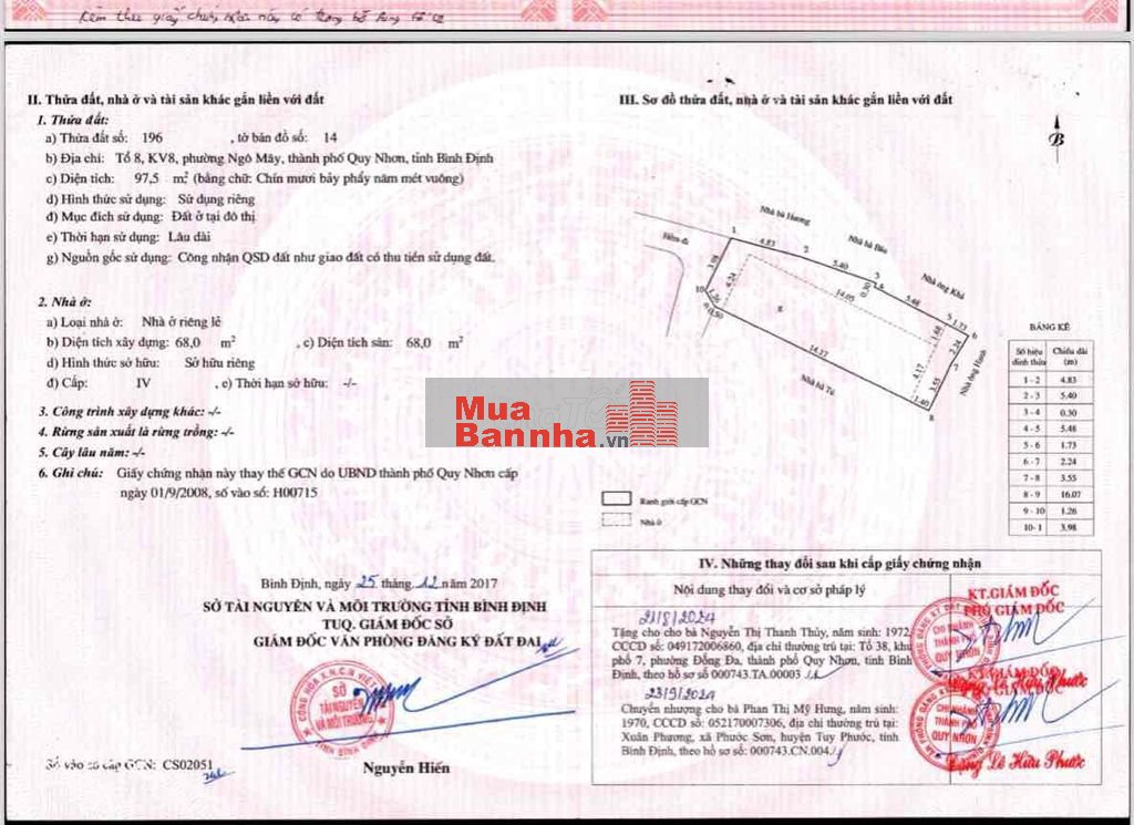 + Diện tích 97,5m2, Nhà có diện tích 68m2, đất nở hậu Hướng Tây Bắc
