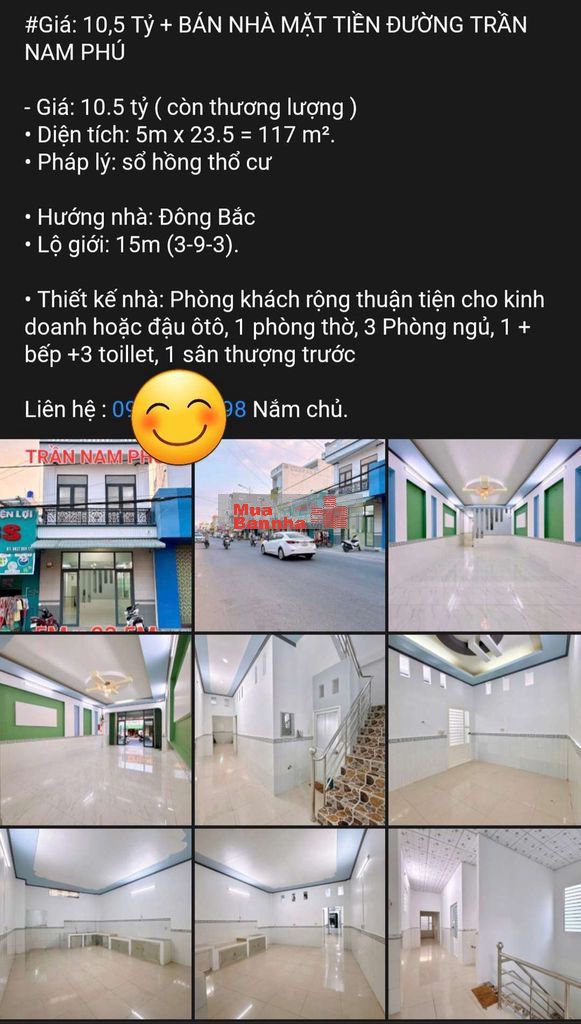 Quý vị đang xem nội dung tin rao "BÁN NHIỀU TÀI SẢN MẶT TIỀN TRẦN NAM PHÚ". Mọi thông tin, nội dung liên quan tới tin rao này là do người đăng tin đăng tải và chịu trách nhiệm. Muabannha.vn luôn cố gắng để các thông tin được hữu ích nhất cho quý vị tuy nhiên Muabannha.vn không đảm bảo và không chịu trách nhiệm về bất kỳ thông tin, nội dung nào liên quan tới tin rao này.