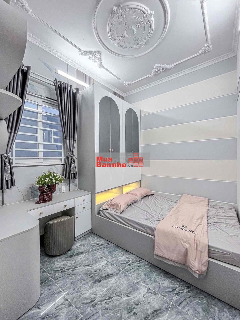 -Tầng trệt gồm: sân 2m đậu xe máy, phòng khách, phòng ngủ, bếp, sàn nước phía sau.
