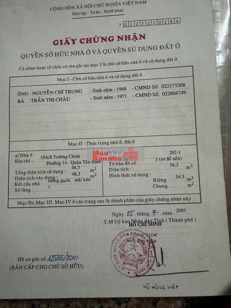 Cần tiền bán nhà gấp địa chỉ: 560/28/1 đường Trường Chinh phường 13 Tân Bình diện tích 4,6 x 12m nhà cấp 4 giá 5,6 tỷ còn thương lượng