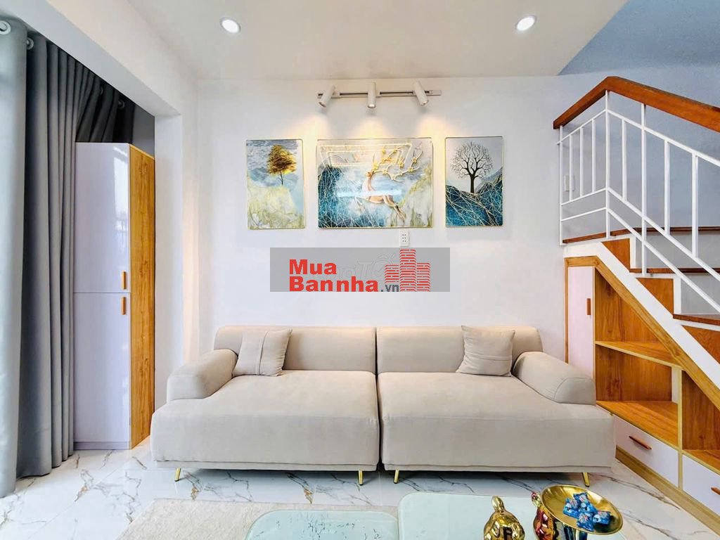 + Kết cấu: Nhà 1 trệt, 1 lầu, có giếng trời thoáng mát, 2 phòng ngủ, 2 nhà vệ sinh, phòng bếp, phòng khách, khu giặt phơi, ban công, nhà mới đẹp full nội thất cao cấp vô ở ngay.