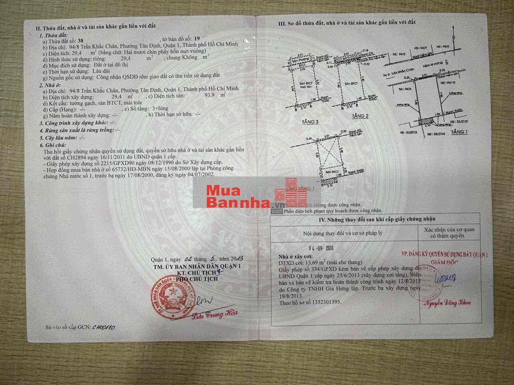 Tôi là chính chủ cần bán nhà hxh 94/8 Trần Khắc Chân, Quận 1