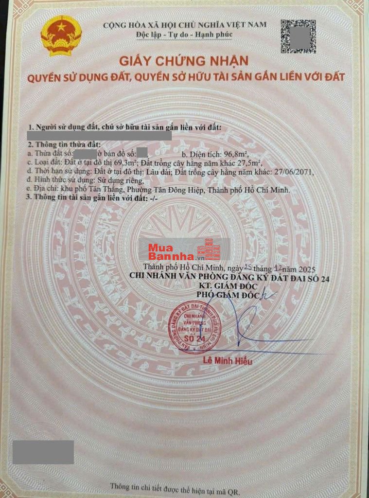 Thổ cư 69.3m. Sổ hồng riêng.