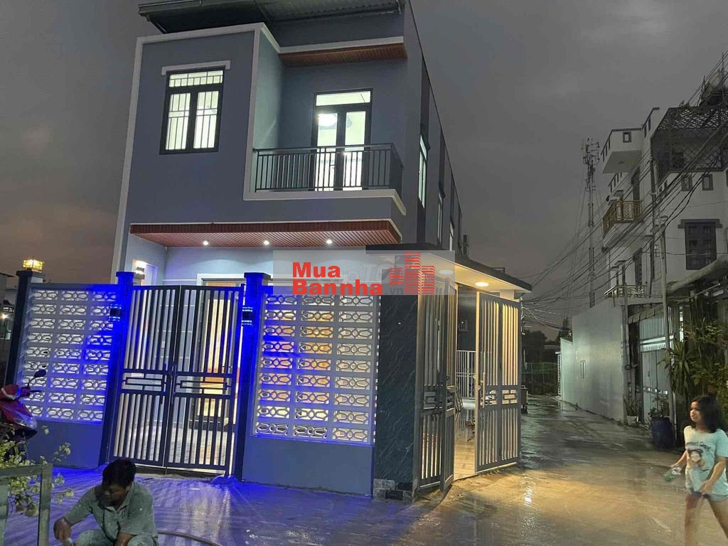 Nhà 1 trệt 1 lầu có sân xe máy, phòng khách, bếp, phòng thờ, 2 phòng ngủ, 2wc