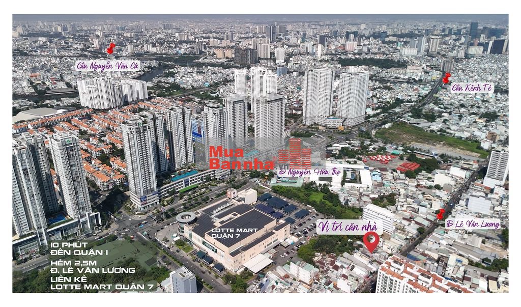 - Vị trí: Hẻm trước nhà rộng 3m, đường Lê Văn Lương phường Tân Hưng Quận 7, chỉ 10 phút đến chợ Bến Thành (3,5km). Liền kề với Lotte Mart Quận 7. Cách ĐH Tôn Đức Thắng, RMIT, VFIS chỉ 5 phút (1,5km), khu vực xung quanh đầy tiện ích trường học, bệnh viện Tân Hưng, Tâm Anh, cây xăng, siêu thị.