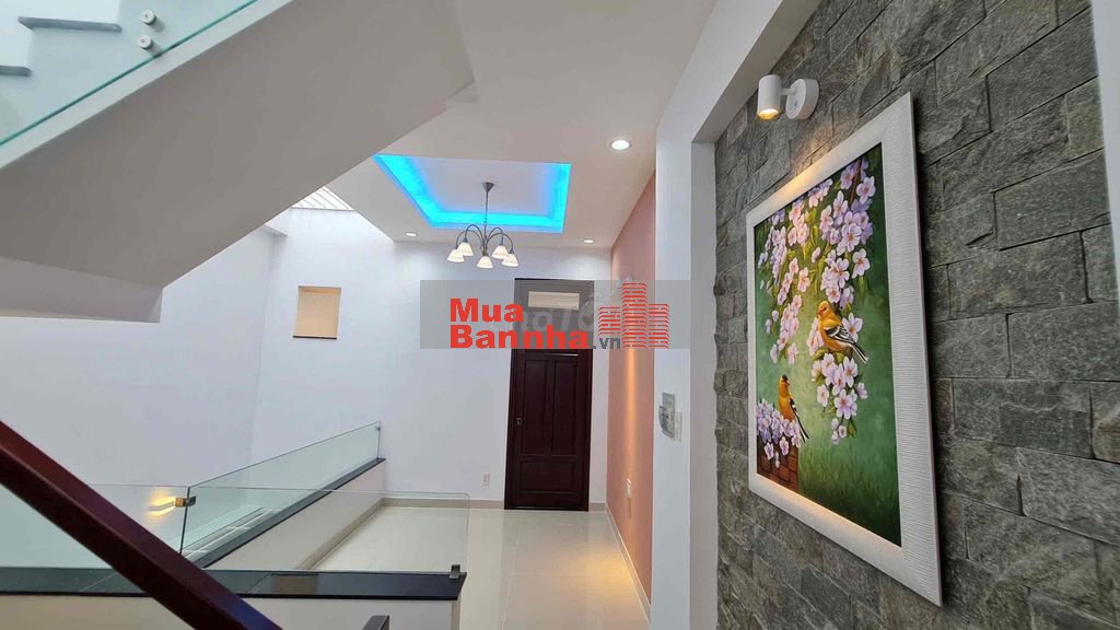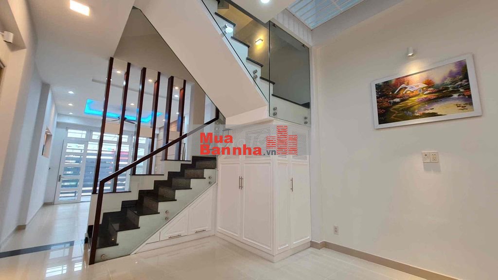 Nhà đẹp 1 trệt, 3 lầu. Sân trước, sân sau, Gara xe hơi, Bếp, 4 PN, 4WC, Sân thượng trước sau, thoáng mát. Có dự phòng không gian lắp thang máy. Thiết bị: vệ sinh Kohler, Bếp Teka.