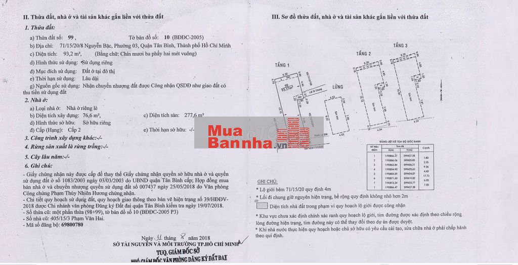 Diện tích đất 93,2m2 (5m, nở hậu hơn sáu mét); diện tích sàn sử dụng hơn 320 m2. Kết cấu: 1 trệt 3 lầu, 24 phòng trọ rộng rãi, có gác lửng, máy lạnh, nước nóng lạnh; khu giặt và phơi chung; KDC an ninh. Hiện đang cho thuê full phòng trọ, thu nhập tốt và ổn định trên sáu mươi triệu/tháng