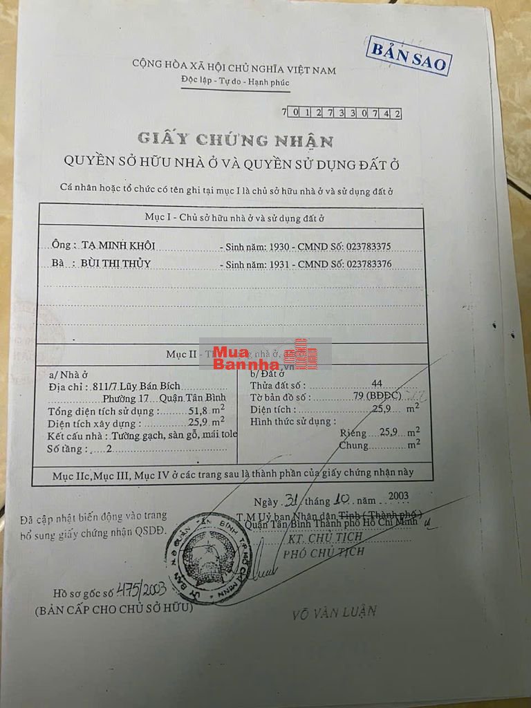 811/7, Đường Lũy Bán Bích, Tân Sơn Nhì, Hồ Chí MinhMức giá