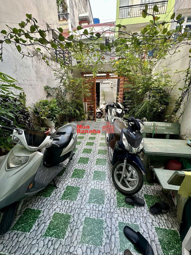 . Hẻm trước nhà xe hơi 4m. Nhà có Sân vườn trước nhà ~4m rộng rãi, trồng cây, để xe thoải mái