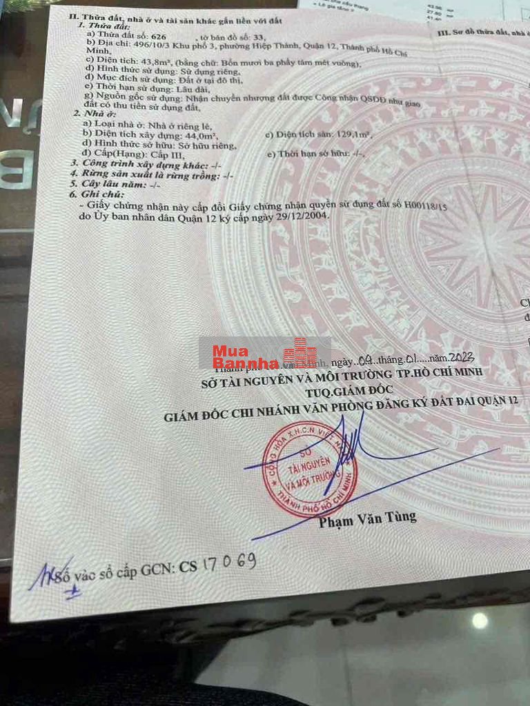 BÁN NHÀ SHR 4x11M 1 LỬNG 2 LẦU NGUYỄN ẢNH THỦ P HIỆP THÀNH Q12