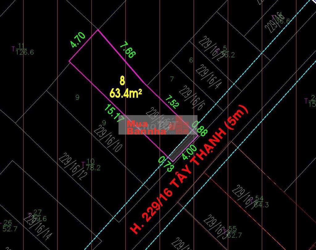 DT: 4 x 16m, nở hậu 4.7m