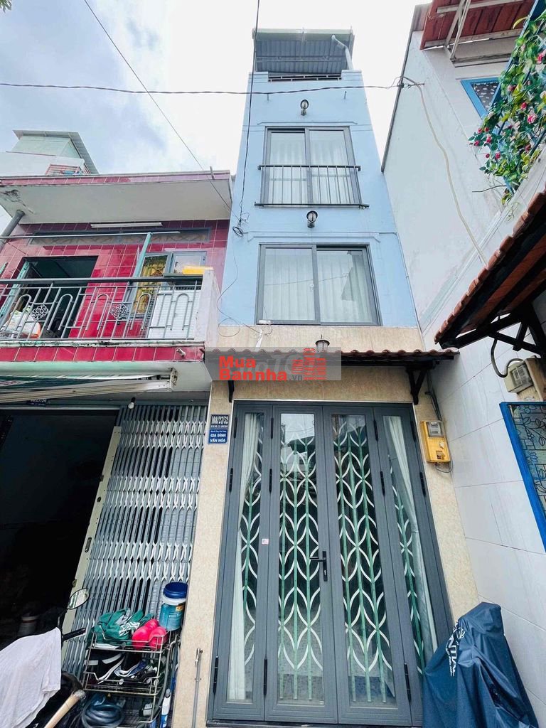 - Kết cấu: nhà 3 tầng BTCT, Trệt, lửng, lầu, sân thượng, 3 phòng ngủ, 4 WC, 1 phòng thờ, có sân để xe gắn máy.