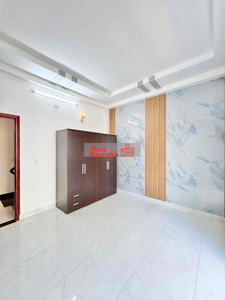 Diện tích : 4,11m x 12m. SD 144 m. Hiện trạng 1 Trệt 3 Lầu gồm 4Pn 1PT 3WC. Sân phơi. Nhà đẹp kiên cố, đường rộng 8M xe hơi đổ cả ngày đêm.