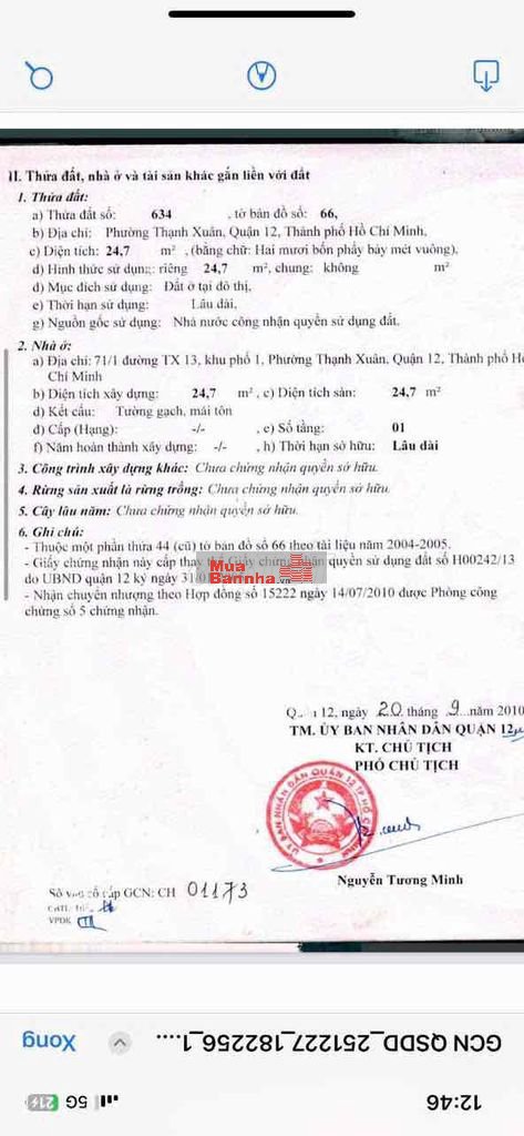 Quý vị đang xem nội dung tin rao "Nhà Sổ Hồng Riêng 1,8 tỷ tl Thạnh Xuân 13 Q12". Mọi thông tin, nội dung liên quan tới tin rao này là do người đăng tin đăng tải và chịu trách nhiệm. Muabannha.vn luôn cố gắng để các thông tin được hữu ích nhất cho quý vị tuy nhiên Muabannha.vn không đảm bảo và không chịu trách nhiệm về bất kỳ thông tin, nội dung nào liên quan tới tin rao này.
