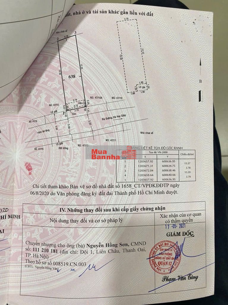 Bán nhà TX31 Quận 12 full thổ cư.