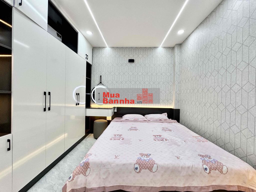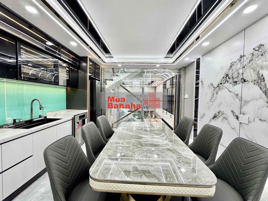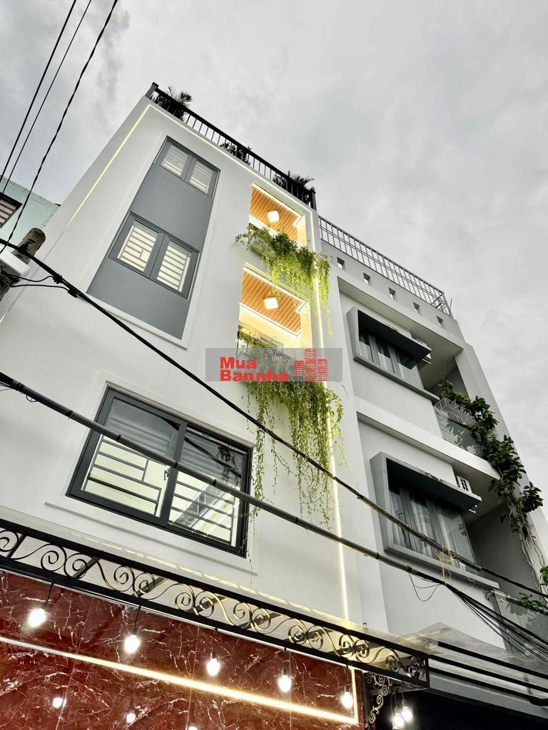 Diện tích : 4m x 12,5m. CN 50,1m2. Hiện trạng 1 Trệt 1 Lửng 3 Lầu. Gồm có Gara oto, Sảnh, Bếp, Tiểu cảnh, Sân Thượng, Sân Phơi, Thông tầng..., 4Phòng 5Wc. Nhà xây mới hoàn toàn 100%. Sạch sẻ tối ưu không gian vào ở ngay.