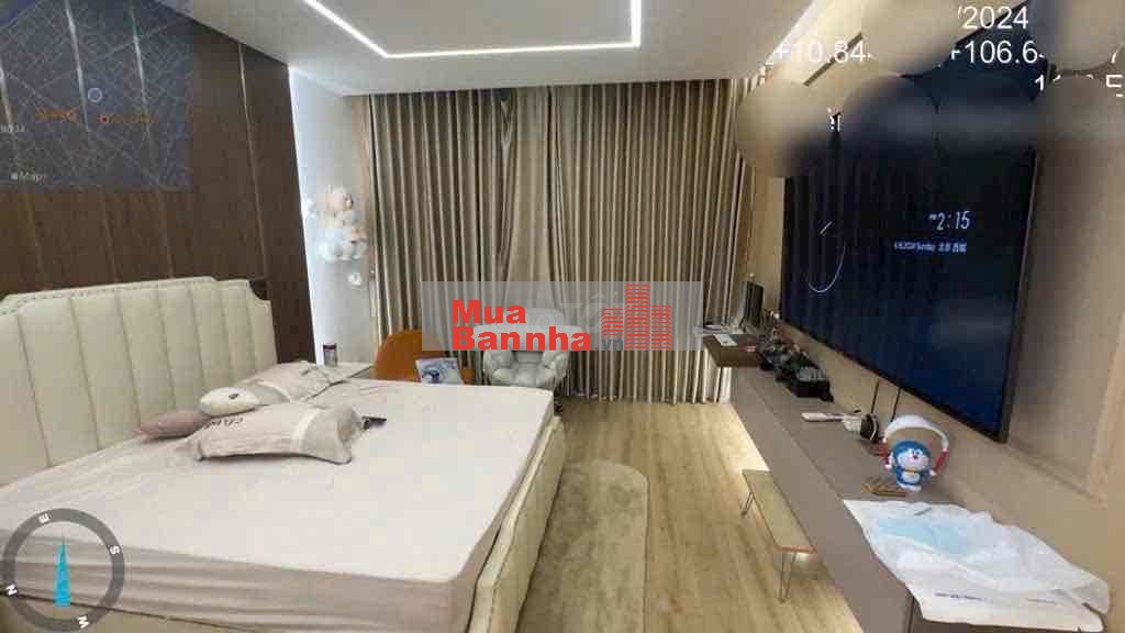 Nhà có hầm để được 2 xe hơi, trệt, 3 lầu, nội thất 5 máy lạnh, bếp tủ, wc.