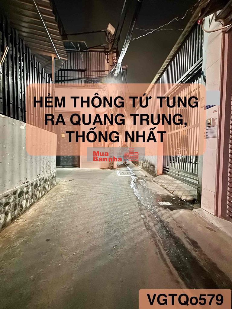 LÔ GÓC QUANG TRUNG 2 TẦNG, NGANG ĐẸP 4.5M, HẺM THÔNG TỨ TUNG