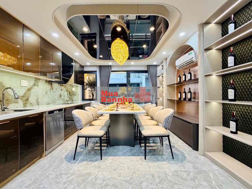 ▪️Nhà xây dựng theo phong cách hiện đại, nhà 1 trệt,1 lửng, 3lầu, sân thượng, mái che cầu thang ( 6 tầng) , nhà có thang máy,có 4 phòng ngủ trong đó có1 phòng ngủ Master, 1 phòng giải trí, 7 wc,phòng khách, gara ô tô ,1 phòng bếp cực xịn xò ( máy rửa chén, hút mùi cảm biến, hệ tủ chén nâng hạ, tay ben Blum...), 1 phòng thờ, sân thượng. Nhà full nội thất, giường ngủ, máy lạnh, rèm, và tủ quần áo trong các phòng, khách chỉ cần xách vali vào ở