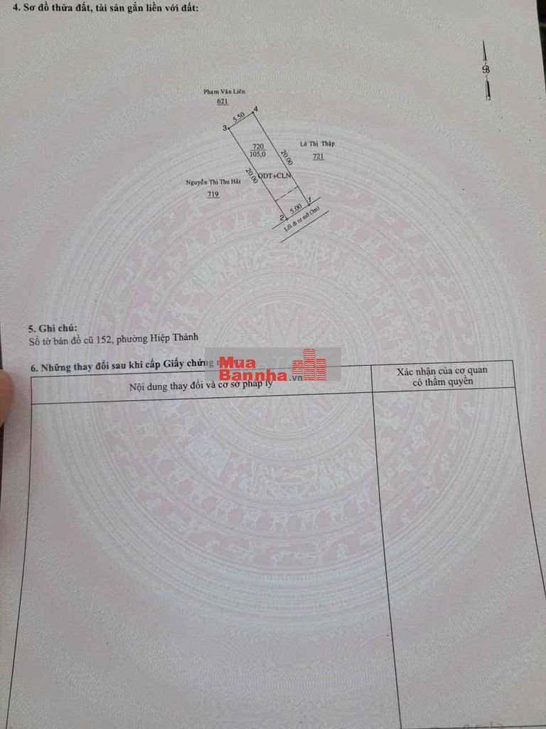 - DT : 5x21 = 105m2 ( nở hậu ) thổ cư 84.8m2