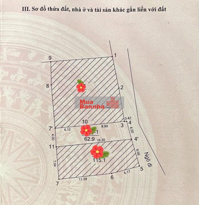 - Diện tích 62,9m, vuông đét, mt4m. Giá 8,1 tỉ. Có thương lượng.