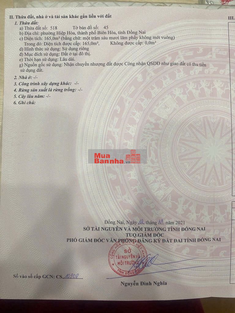 165 m² thổ cư 100 % Phường Hiệp Hoà. TP Biên Hòa, ĐN