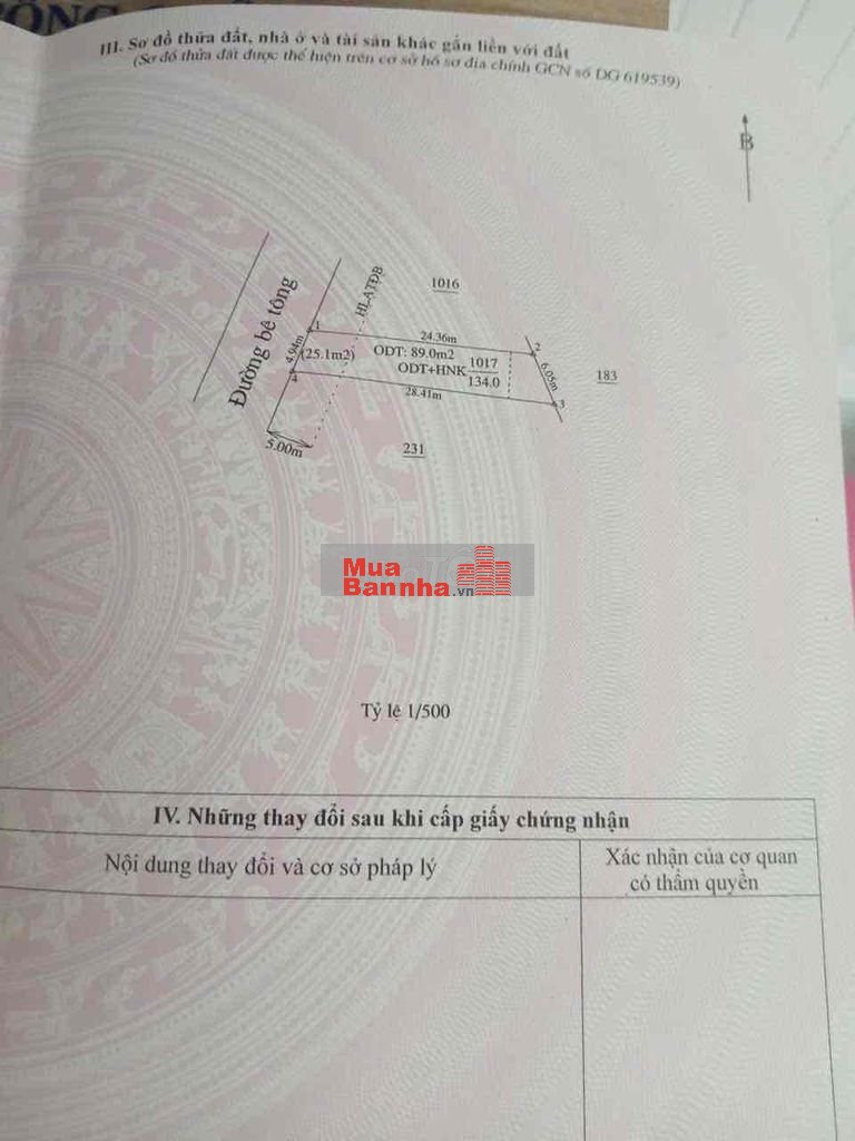 Dt : 5x28= 134 thổ cư 89m