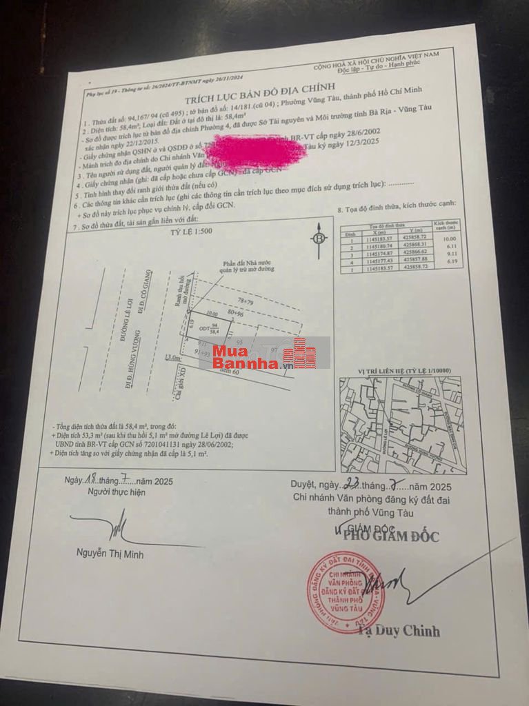 CHÍNH CHỦ Bán tài sản lõi nhà mặt tiền trung tâm Vũng Tàu cách bãi Trước 500met