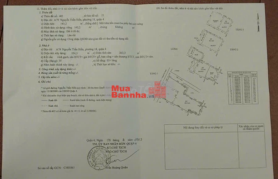 Quý vị đang xem nội dung tin rao "Bán nhà Mặt Tiền Q.4". Mọi thông tin, nội dung liên quan tới tin rao này là do người đăng tin đăng tải và chịu trách nhiệm. Muabannha.vn luôn cố gắng để các thông tin được hữu ích nhất cho quý vị tuy nhiên Muabannha.vn không đảm bảo và không chịu trách nhiệm về bất kỳ thông tin, nội dung nào liên quan tới tin rao này.