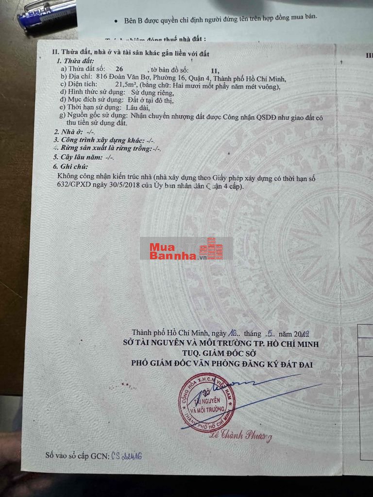 Quý vị đang xem nội dung tin rao "🏡 BÁN NHÀ MẶT TIỀN ĐƯỜNG ĐOÀN VĂN BƠ, PHƯỜNG 16, QUẬN 4 – GIÁ CHỈ 2,8". Mọi thông tin, nội dung liên quan tới tin rao này là do người đăng tin đăng tải và chịu trách nhiệm. Muabannha.vn luôn cố gắng để các thông tin được hữu ích nhất cho quý vị tuy nhiên Muabannha.vn không đảm bảo và không chịu trách nhiệm về bất kỳ thông tin, nội dung nào liên quan tới tin rao này.