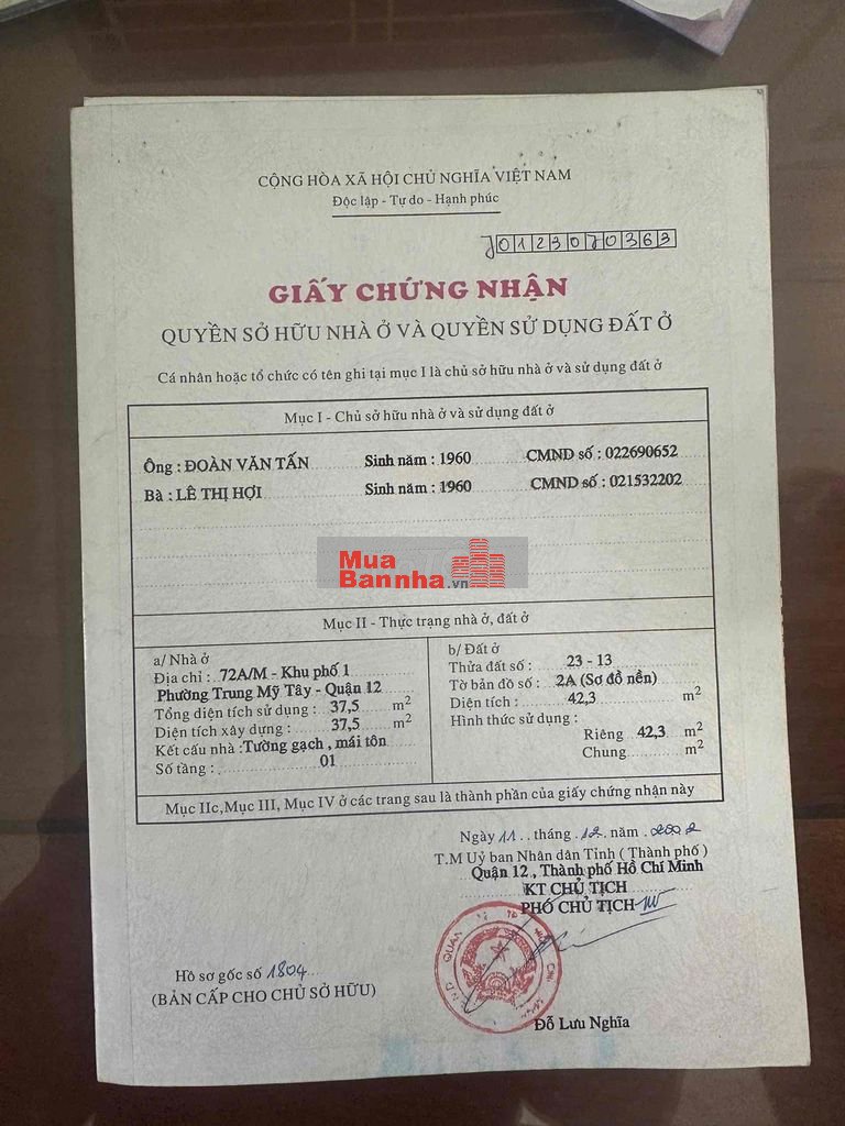 101M2 ĐẤT ( 3.7 X 26 ) HOÀN CÔNG 2TẦNG